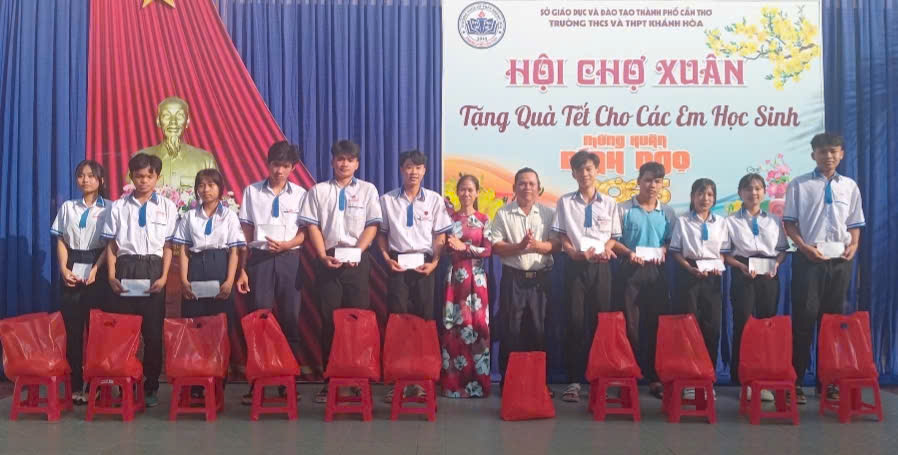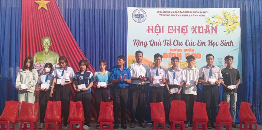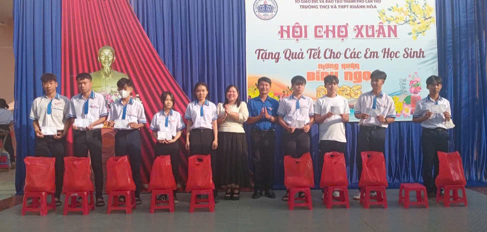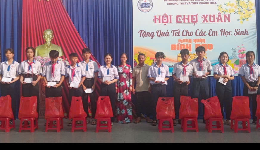 Nhân dịp này, Hội Chữ thập đỏ Trường THCS & THPT Khánh Hòa đã trao tặng 74 phần quà Tết cho các em học sinh có hoàn cảnh khó khăn của trường, mỗi phần quà gồm 500.000 đồng tiền mặt và 5 kg gạo. Nguồn kinh phí do phụ huynh, học sinh toàn trường và các mạnh thường quân đóng góp.