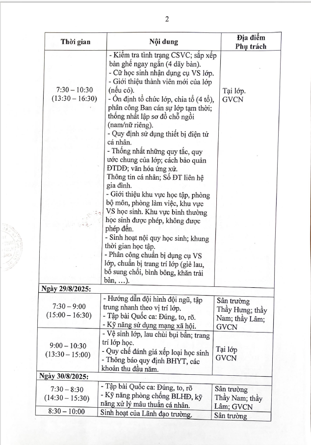 THÔNG BÁO - Tập trung sinh hoạt đầu năm học 2025 - 2026